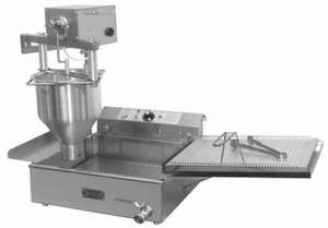 Пончиковый автомат (фритюрная ванна+модернизированный привод дозатора ПРФ-11D), произв. 300 шт/ч, объем фритюра 12 л, объем дозатора 7л, 380В, 5,1 кВт, 23 кг.. Размеры (мм): 1330х560х600 Производитель: Сиком Модель: ПРФ-11/300AD