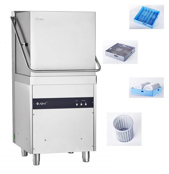 Посудомоечная машина Купольного типа, производительность 700 тарелок/час, комплектуется кассетой для мытья тарелок, кассетой для мытья стаканов и чашек, стаканом для мытья приборов, дозатором моющего и ополаскивающего ср-в, работает при подключении горячей и холодной воды,обзорное стекло на куполе с лампой освещения, 2 режима мойки, 380/230В, 10,5 кВт, 107кг, Чебоксары. Размеры (мм): 725х830х1490(1920) Производитель: Abat Модель: МПК-700К